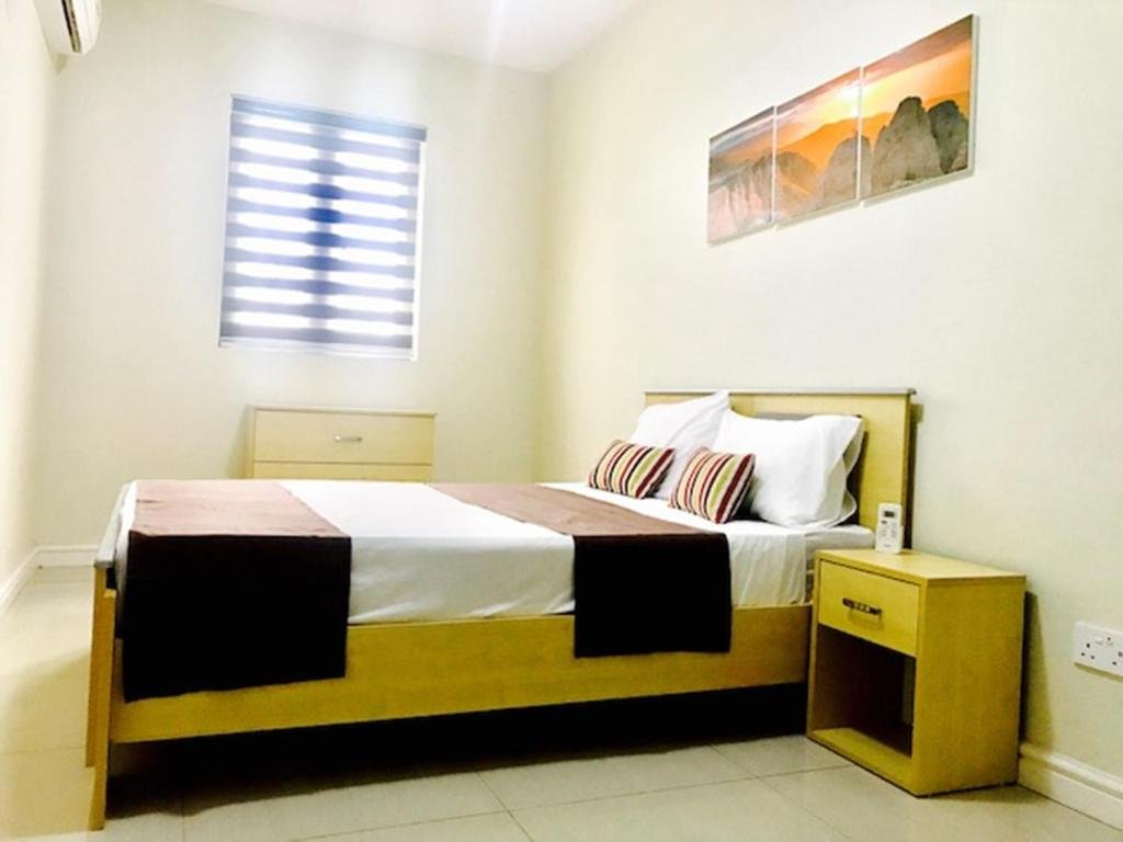 The unit has two bedrooms with double beds and a bathroom with a walk-in shower.